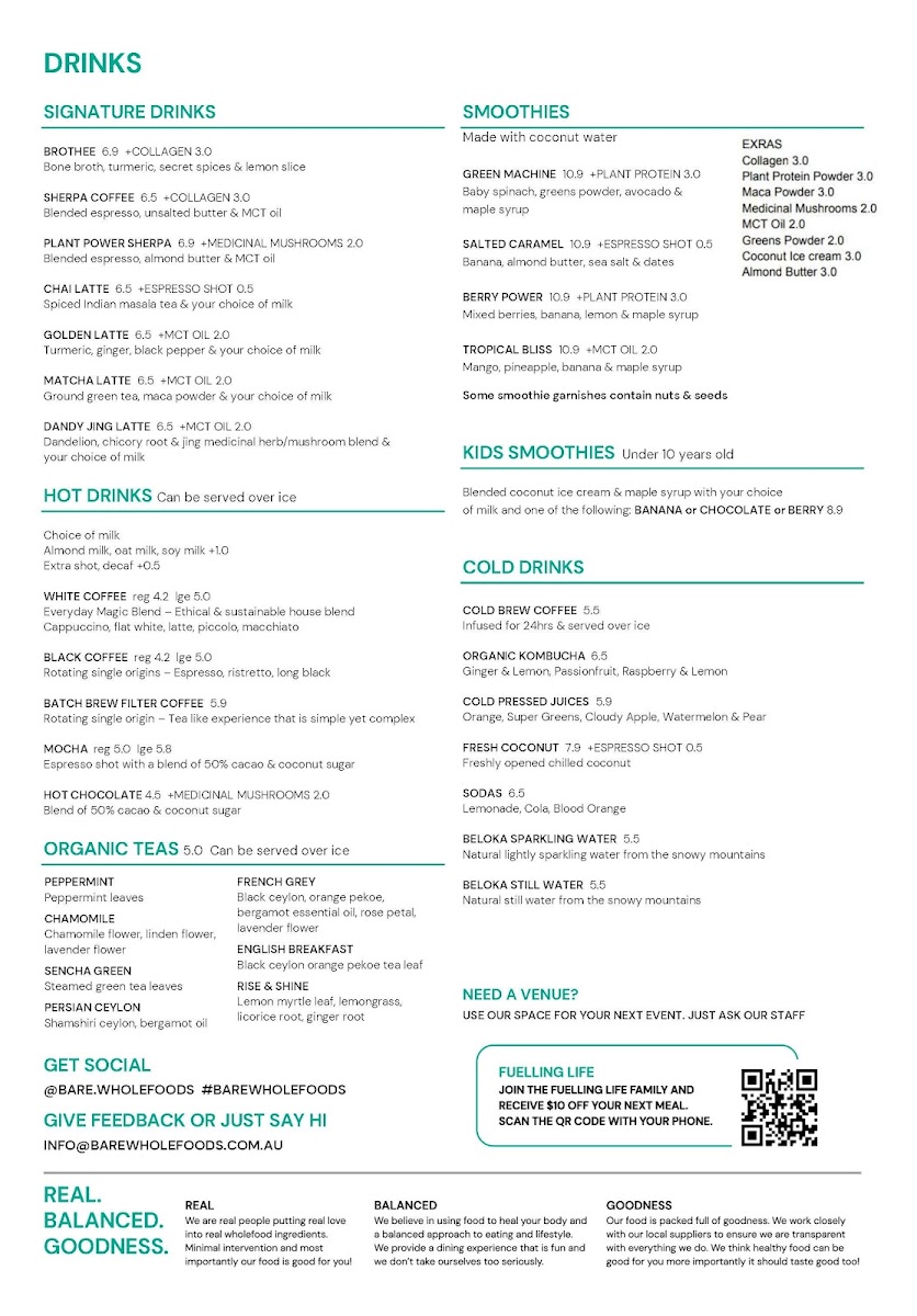 Welcome to Bare Wholefoods Mona Vale, a delightful café nestled in the charming streets of Mona Vale, NSW. This hidden gem boasts an inviting atmosphere and a menu that celebrates wholesome ingredients, offering a range of classic and signature dishes. From the beloved Eggs On Toast ($15.50) to the indulgent 15 Hrs Lamb Terrine ($31.80), each item is crafted with care to ensure freshness and flavor.